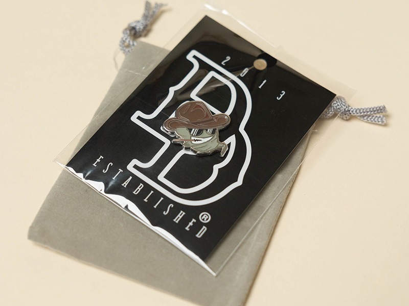 Add a touch of class with our Cowboy Lapel Pin, featuring hard enamel, a rubber clutch, laser-cut site on the back, and a velvet bag, all in a compact 1in x 1in size.